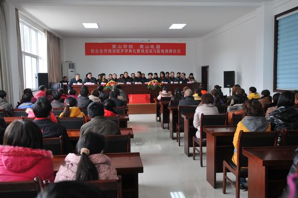 2月28號下午,黃山學院和我公司舉行校企合作培訓班開學典禮暨就業實習基地揭牌儀式,縣委常委、宣傳部長蔣曉放、縣人大常委會副主任程春偉、縣政協副主席程海兒、黃山學院副院長樊嘉祿出席儀式,縣人社局、經信委、科技局、團縣委、公司負責人及繼續教育班75名