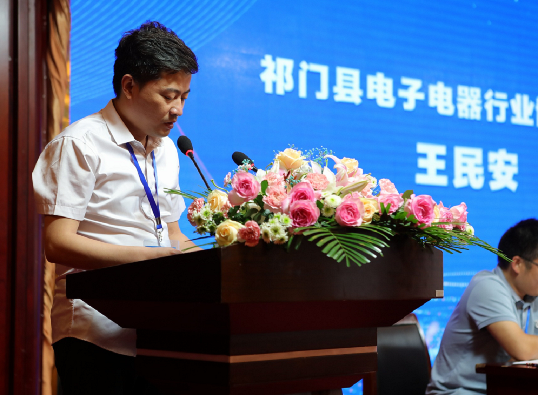 7月24日,由祁門縣多家電子電器企業發起,經主管部門審批同意,祁門縣電子電器行業協會成立大會在祁紅國際大酒店舉行。公司總經理王民安當選為祁門縣電子電器行業協會首任會長。
